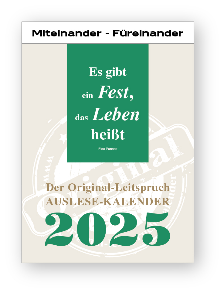 Dieser Original-Leitspruch-Auslese-Kalender ist kleiner (Kalendergröße: 20 x 28 cm) als der Original-Leitspruch-Tages-Kalender und eignet sich daher besonders für den privaten Bereich.