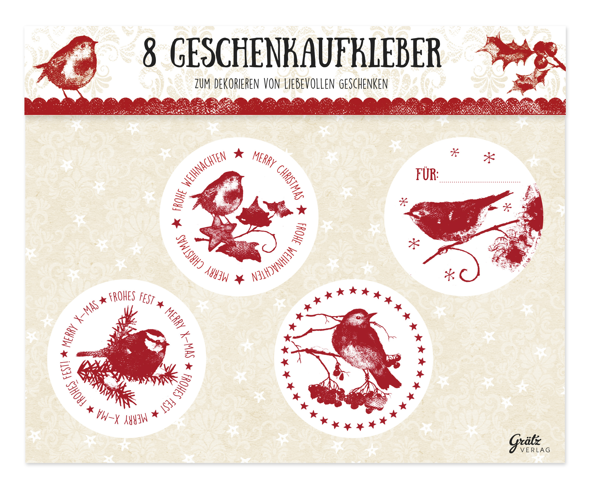 Mit diesen süßen Geschenkaufklebern können Geschenke und Verpackungen wunderbar verziert werden.2 Bögen mit je 4 Stickern zum Beschriften