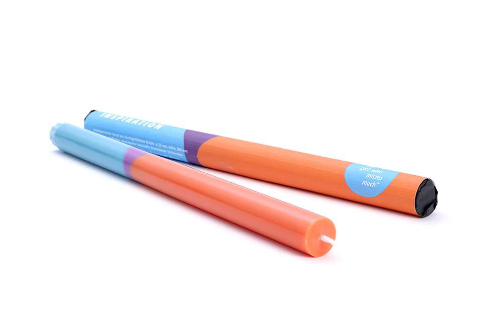 Die einzelne Verpackung, auf der rundum zu sehen ist, wie die Kerze von innen aussieht, wird in Hamburg auf offenem Designpapier klimaneutral gedruckt.