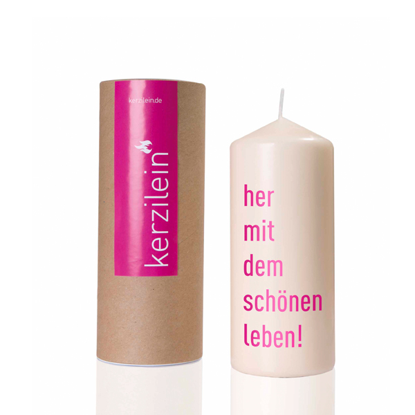 19cm Höhe 8cm Durchmesser 100 Stunden Brenndauer Schriftfarbe pink Verpackt in einer schönen Geschenkdose aus Karton