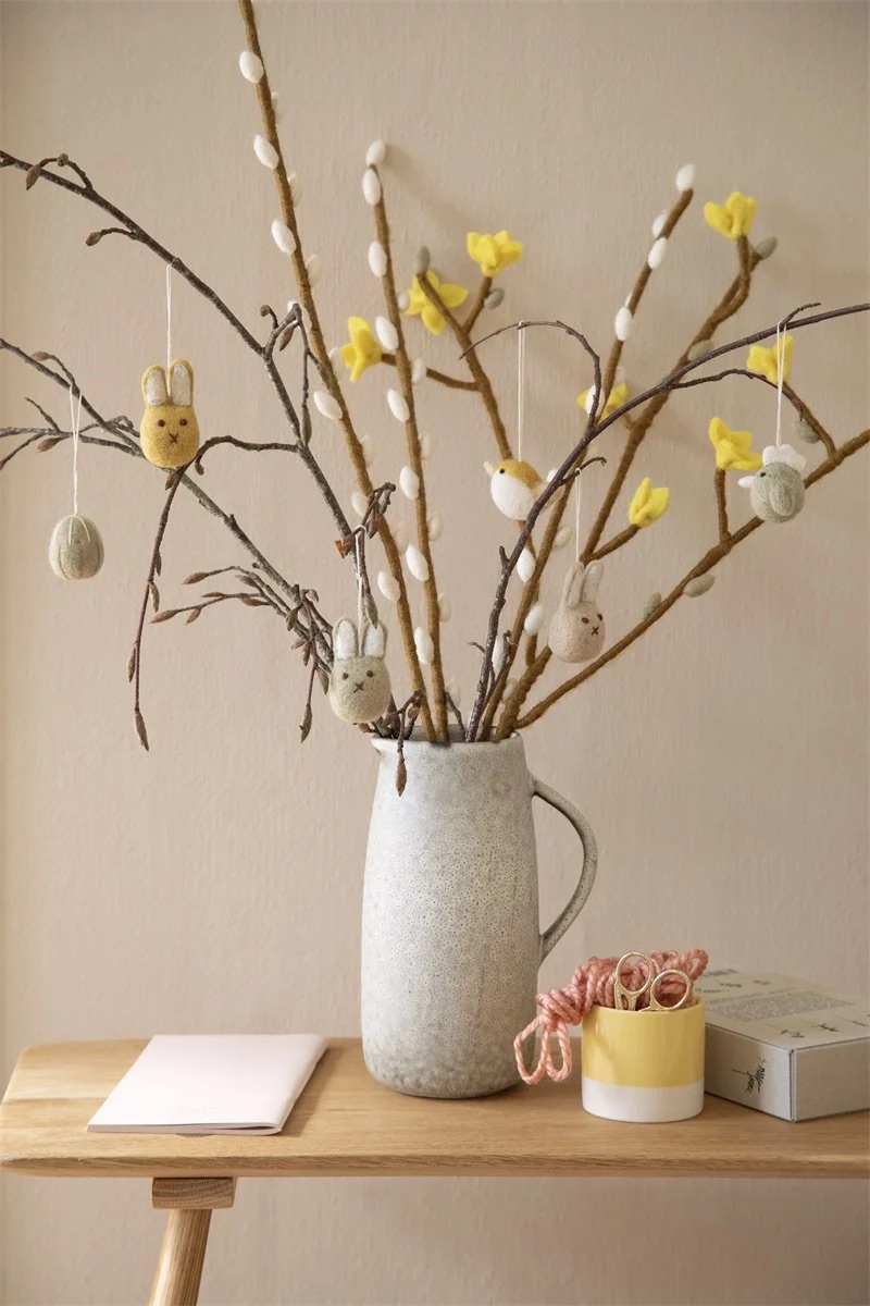 Unser einzigartiges, handgefilztes Hasenset verzückt und begeistert mit seinem entzückenden Aussehen. Hier steckt die Liebe im Detail für einen wunderschönen Osterstrauß