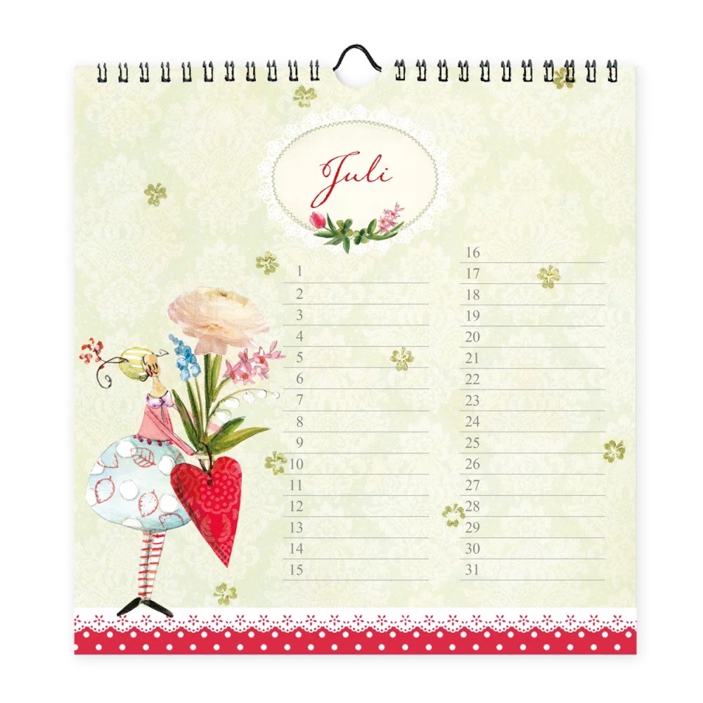 Der Geburtstags-Kalender Sommer wurde von der Künstlerin Silke Leffler liebevoll illustriert. Die einzelnen Monatsblätter sind mit den klassischen Figuren der Künstlerin verziert und bieten genügend Platz für die Geburtstage Ihrer Lieben.