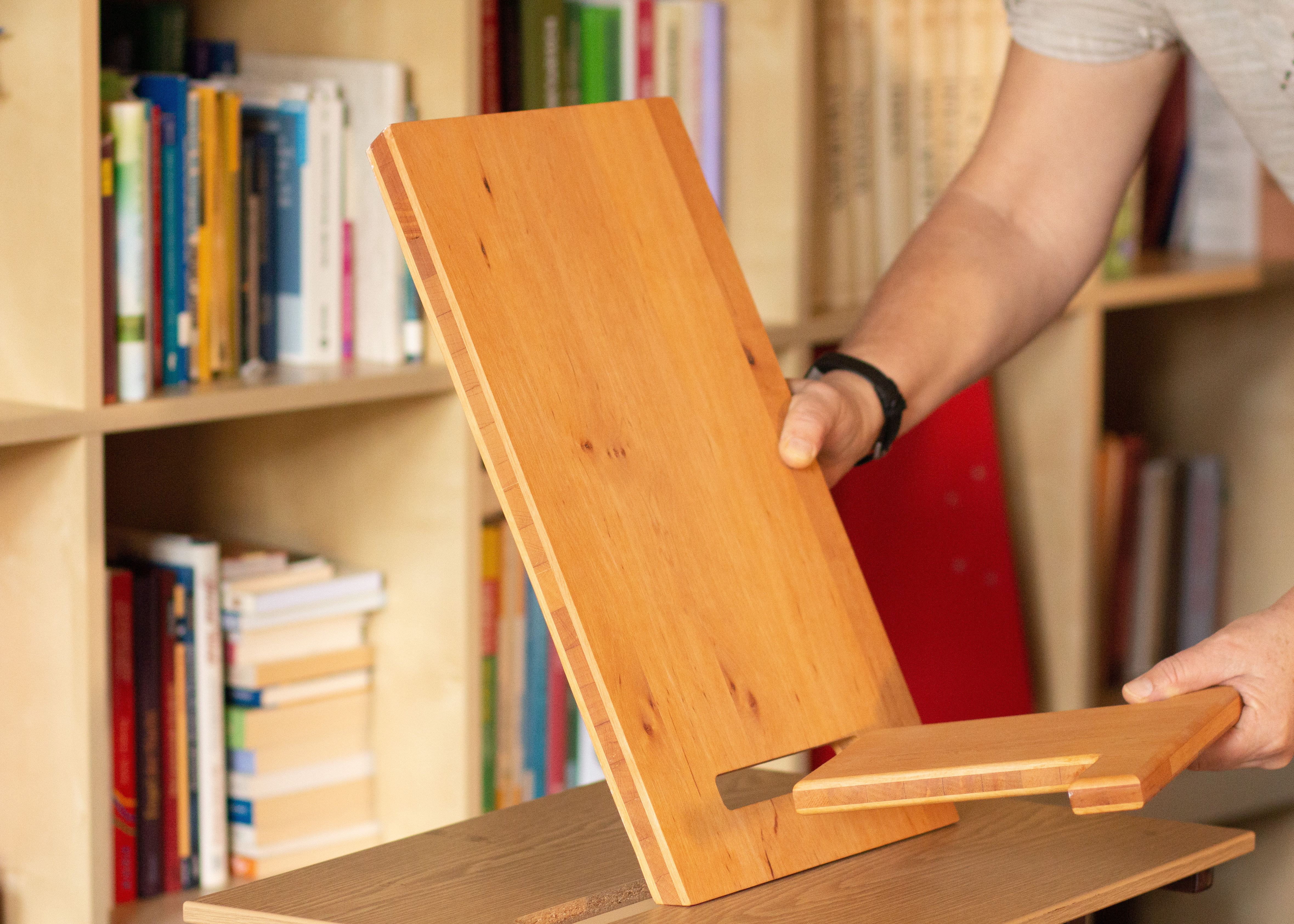 Der Holz-Kalender-Aufsteller kann einfach zusammengesteckt werden.
