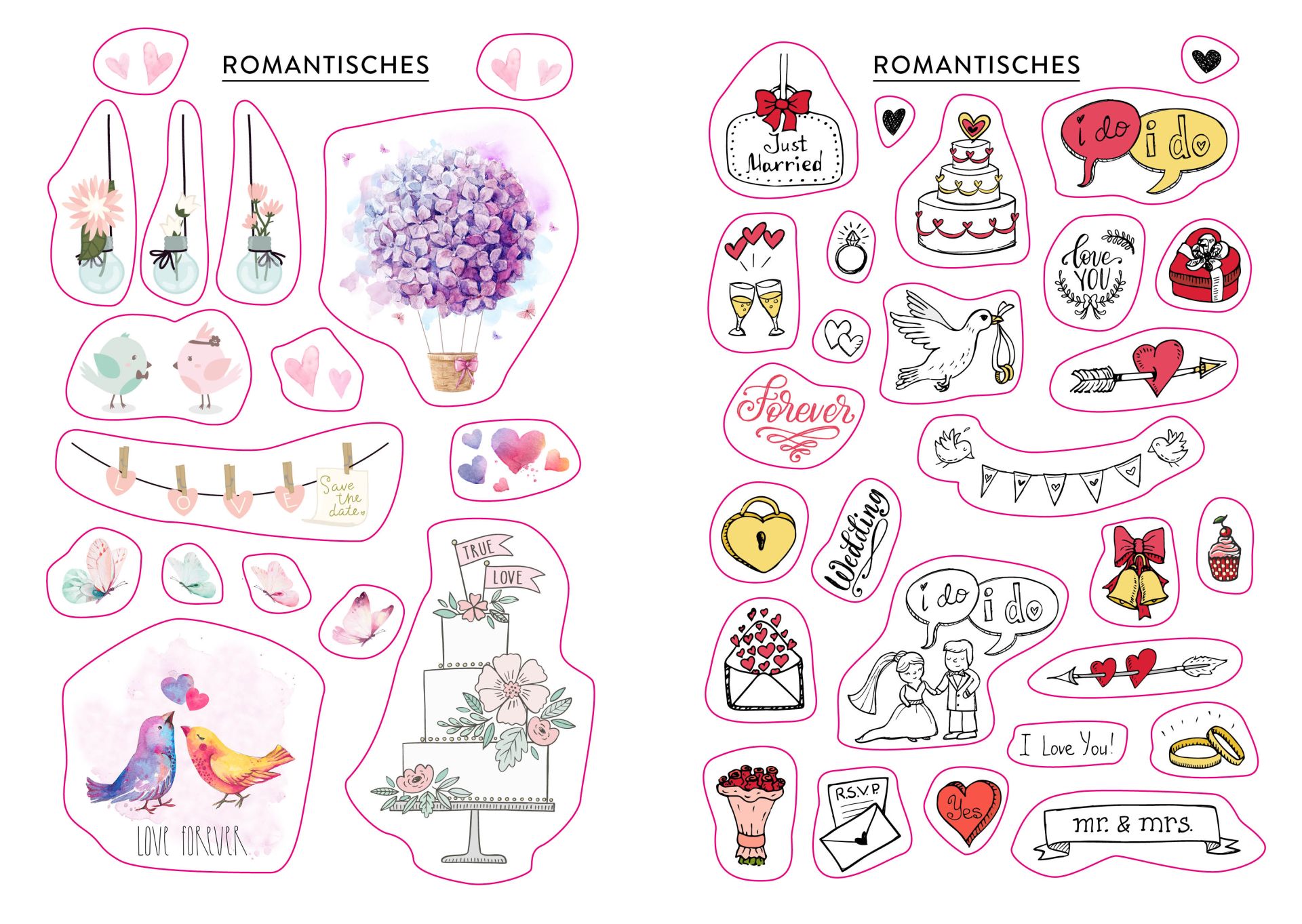 Bullet Journal – Stickerbuch Just married: 850 romantische Sprüche und Schmuckelemente für die Hochzeit: