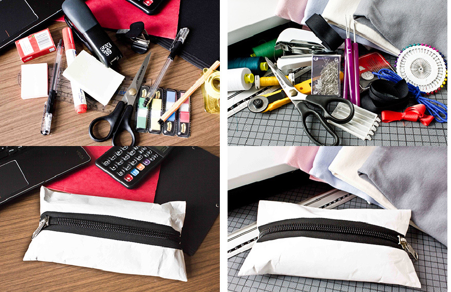 Das Grundmaterial der "Taschen wie aus Papier!“ ist ein unter Hitze verdichtetes Kunststoffvlies. Bei der Herstellung werden bis zu 25 % recycleter Grundstoff verwendet, das Material ist zu 100 % recyclebar und bei der Herstellung energiesparender als z. B. klassisches Papier.