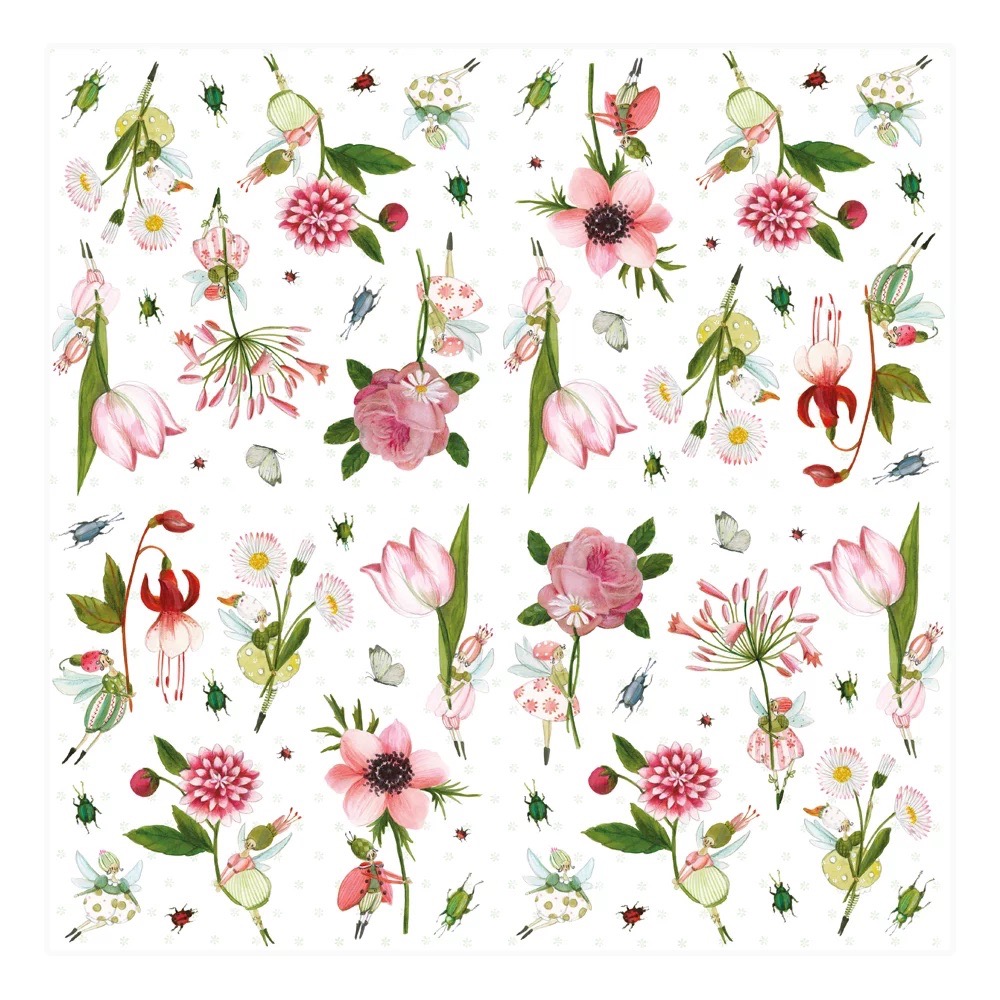 Auf den sommerlichen Servietten Blumenelfen tummeln sich Käfer, Schmetterlinge und kleine Elfen mit Blumen in den Händen. Das hübsche Motiv stammt von Silke Leffler und wird Ihre Tischdeko im Esszimmer, im Garten oder auf dem Balkon wunderbar abrunden.
