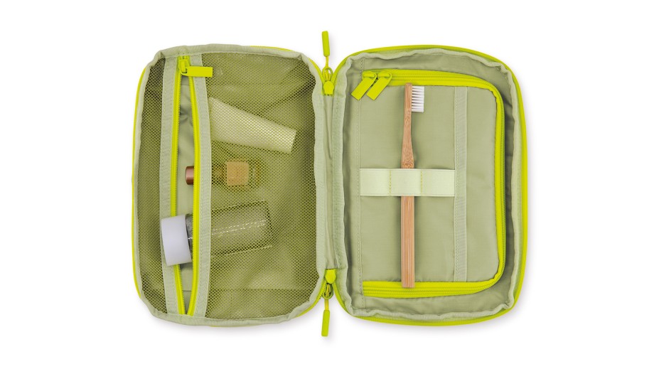 Pinsel, Tuben, Fläschchen, Blister – wer viele, kleine Kosmetik- und Hygieneartikel übersichtlich verstauen möchte, ist bei dieser kompakten Kulturtasche genau richtig. Praktische Steckfächer, Gummihalterungen und zwei Reißverschlusstaschen bringen Ordnung in die Beautyprodukte und die Suche nach Pinzette und Zahnseide gehört ein für allemal der Vergangenheit an. Ideal für Zuhause und für unterwegs. Die Kulturtaschen sind Teil der REMEMBER®-Badserie und passen zu den Badteppichen, den Handtüchern und dem Waschlappen-Set.