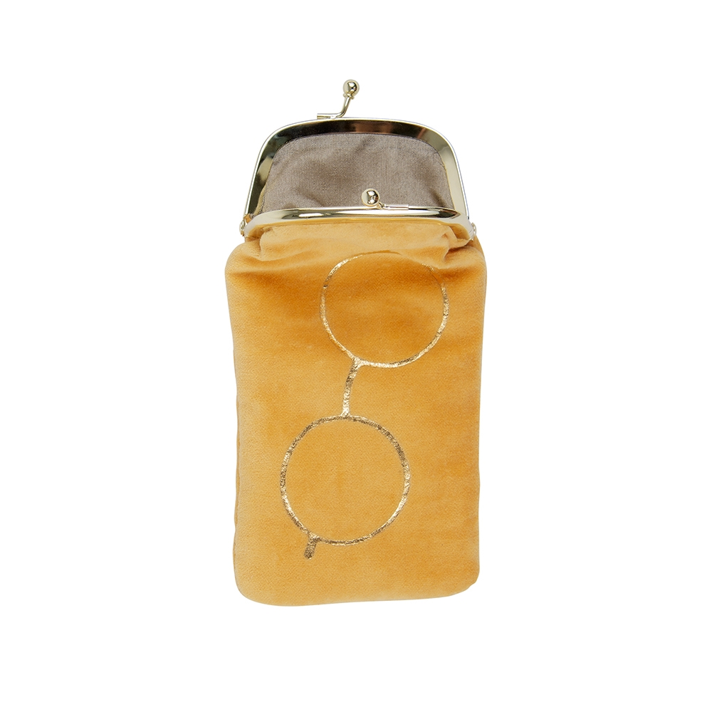 Brillenetui Samt Gelb ideal für den Schutz von Lesebrille und Sonnenbrille. Einfaches Öffnen und Schließen des Etuis durch den goldenen Bügelverschluss 100% Handarbeit - besonders hochwertige Verarbeitung.