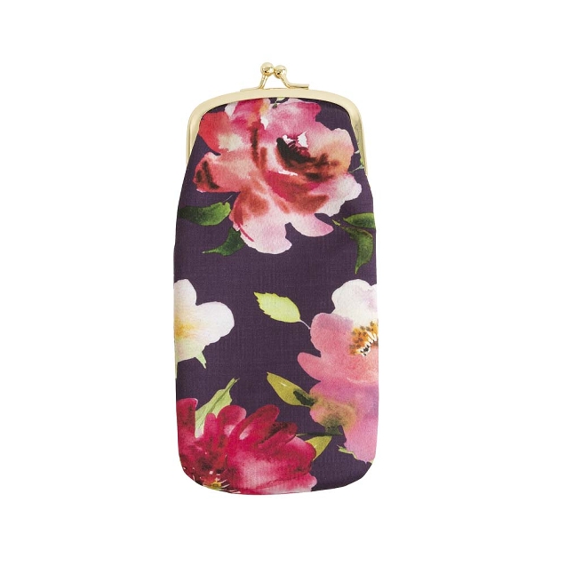 Brillenetui Samt Blüte aubergine. Ideal für den Schutz von Lesebrille und Sonnenbrille Einfaches Öffnen und Schließen des Etuis durch den goldenen Bügelverschluss 100% Handarbeit - besonders hochwertige Verarbeitung.