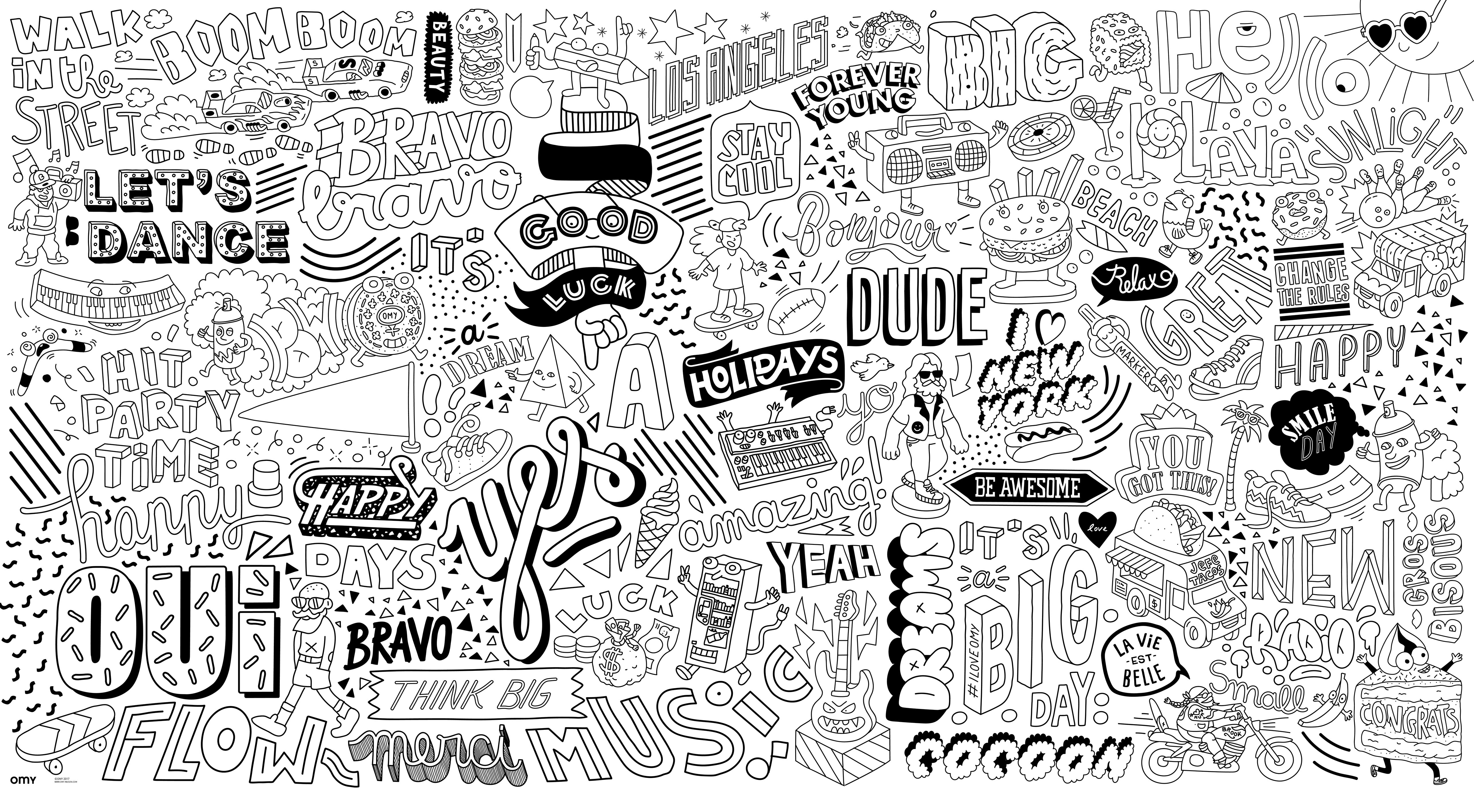 Street Art zum selber Ausmalen!Alleine oder mit Freunden. Sie können Ihrer Fantasie und Kreativität freien Lauf lassen und das Poster ausgerollt auf dem Boden, an der Wand befestigt oder als Tischdecke benutzen.