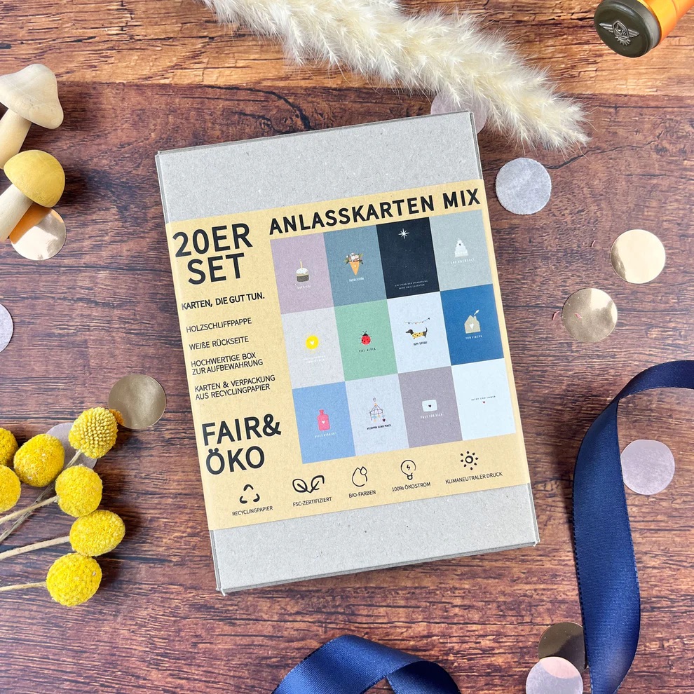 Entdecke das nachhaltige Postkarten-Set mit 20 liebevoll illustrierten Motiven im DIN-A6-Format (14,8 cm x 10,5cm).