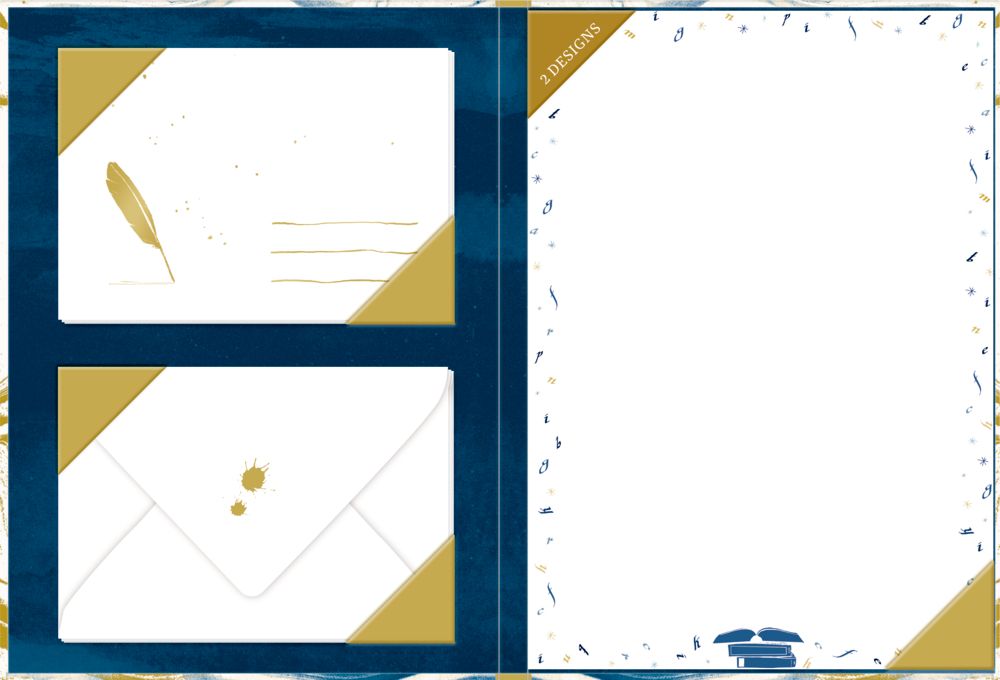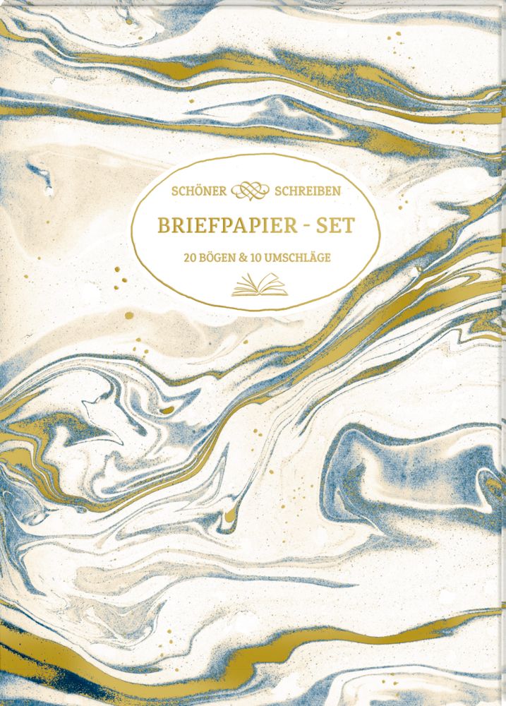 Beigaben: Briefpapier-Mappe mit Goldfolie / 20 Bogen in 2 Designs (DIN A4) und 10 Kuverts / Kuverts mit Goldfolie / 21,7 x 30,7 cm