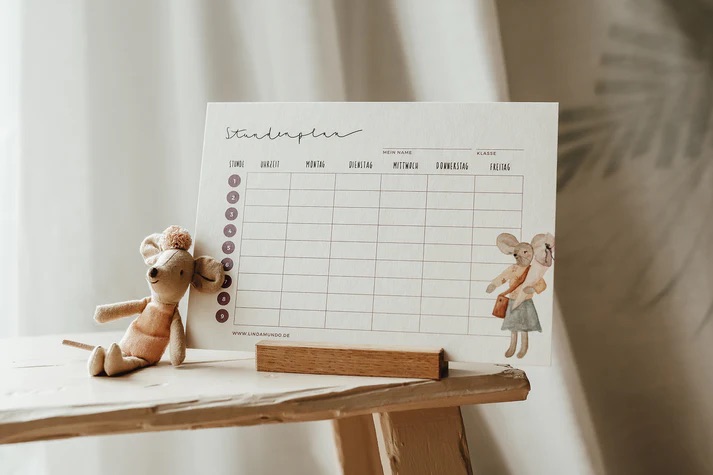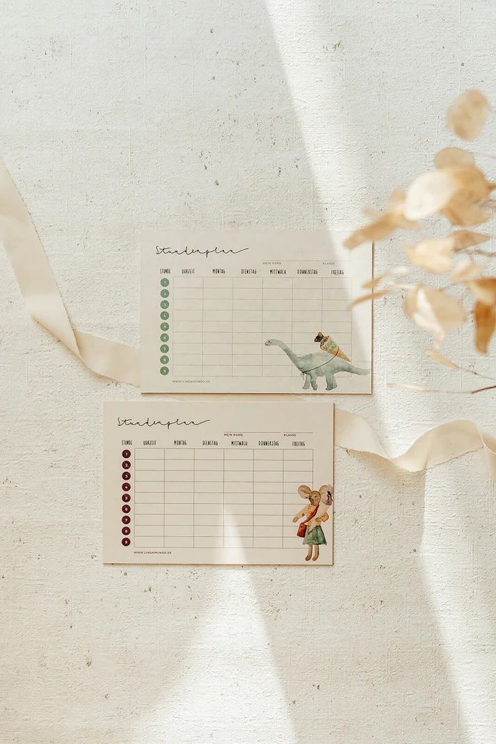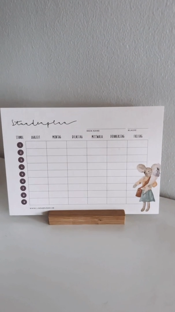 Zur Einschulung gibt es nun diesen zauberhaften Stundenplan im Din A5 Format auf stabiler Holzschliffpappe.