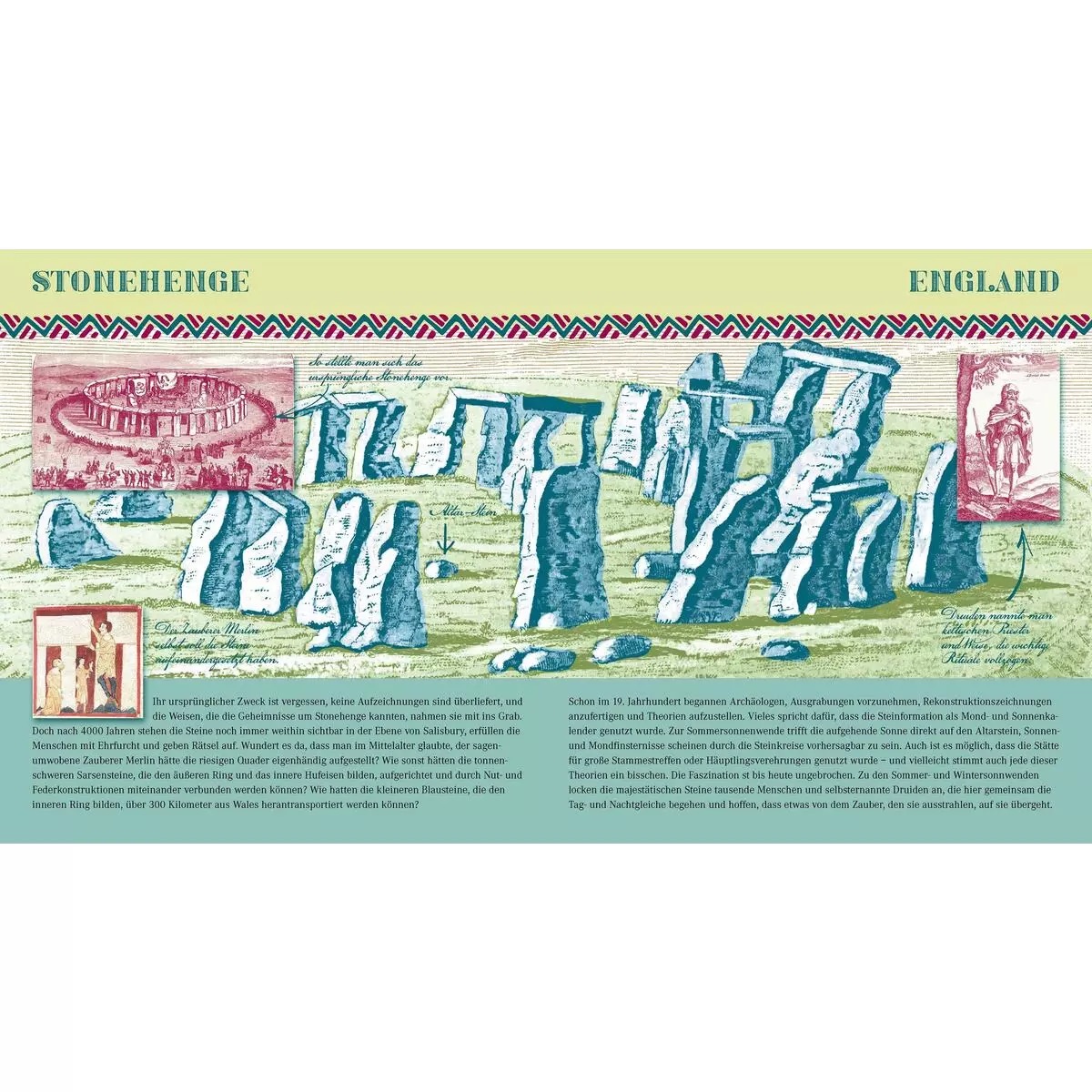 Ein hochwertig ausgestattetes Schmuckbuch für Liebhaber: Jeden Tag im Advent kann eine Seite aufgeschnitten werden. Hinter den 48 Seiten verbirgt sich Wissenswertes und Erstaunliches über sagenumwobene Orte und ihre Geschichten. Entdecken und ergründen Sie die Geheimnisse der ägyptischen Pyramiden, Externsteine, Stonehenge u. v. m. Die Seiten sind aufwendig mit collagierten Fotos gestaltet. Ein Glitzer-Leinenrücken sowie Hoch- und Goldfolienprägung machen das Buch besonders edel. Ein etwas anderer Adventskalender.