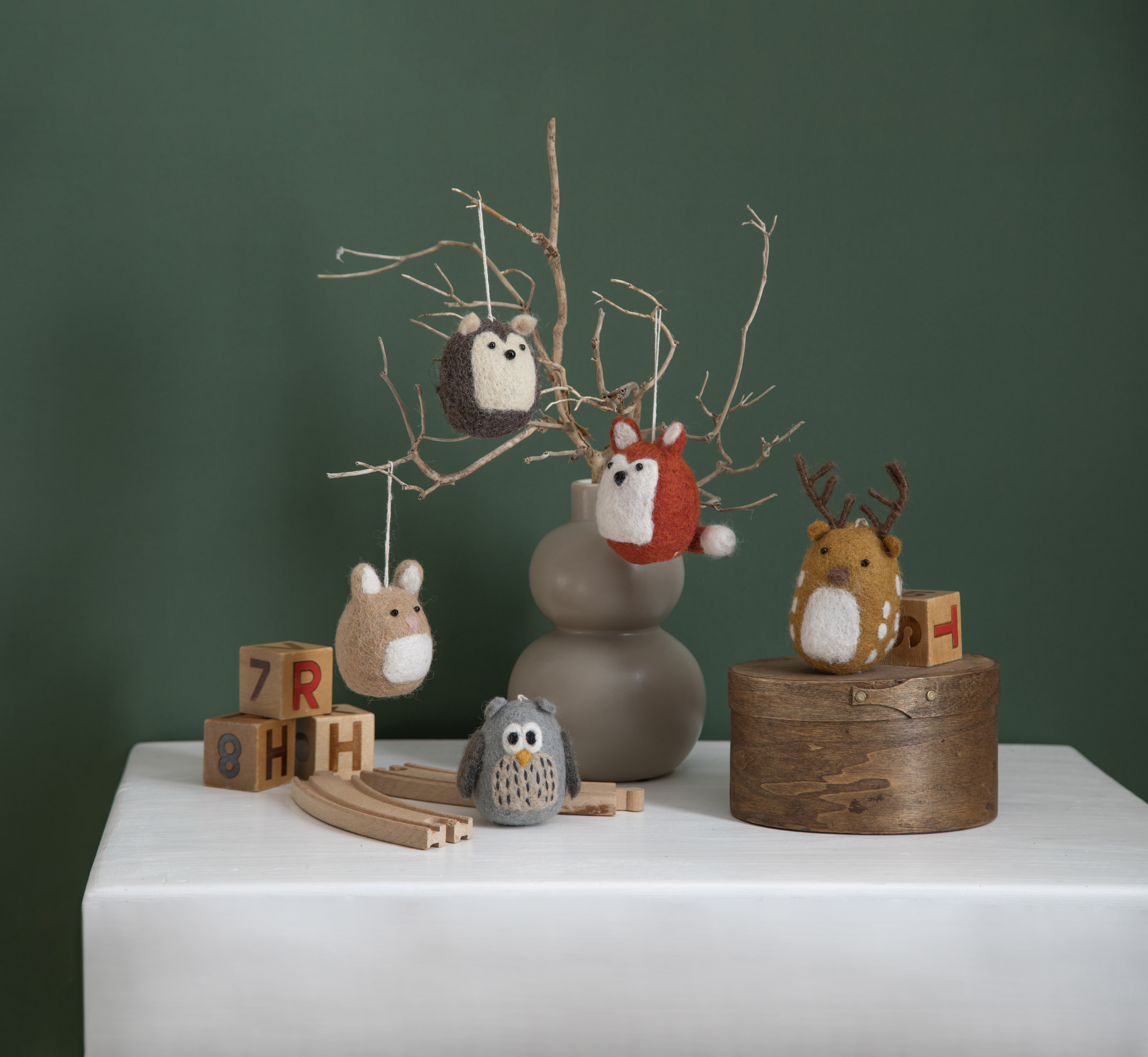 Unsere wundervollen fünf Tiere bilden zusammen eine lustige und liebevolle Bande, die sowohl Jung als auch Alt auf eine spannende Expedition in den Wald einlädt. Die Filzfiguren sind in dezenten Farben gehalten und mit vielen liebevollen Details versehen um sie noch lebendiger wirken zu lassen.